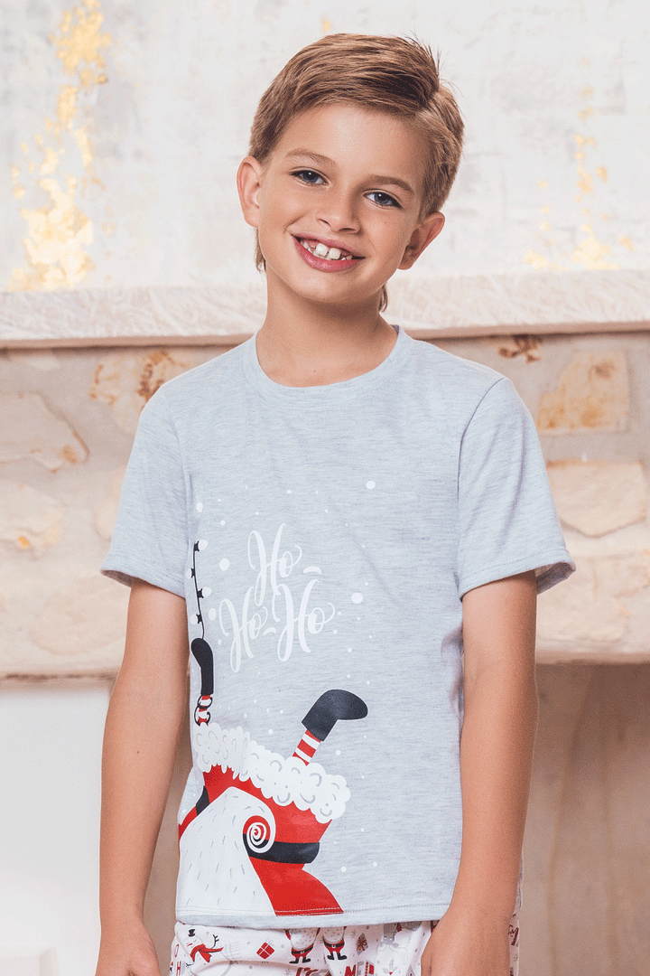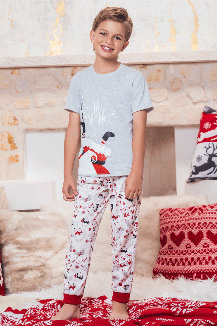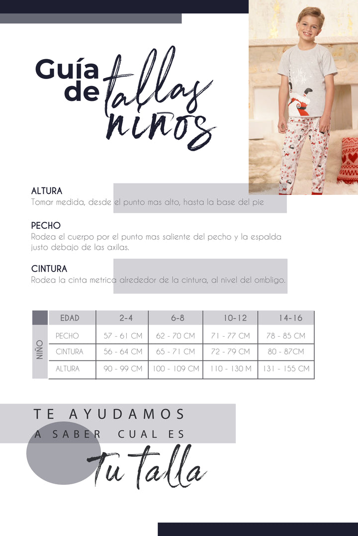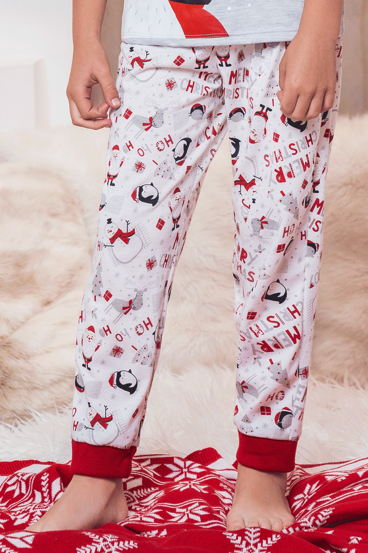 : Conjunto pijama suave, cómoda y divertida para compartir en familia esta Navidad; camiseta manga corta estampada y jogger con puños en rib para un ajuste perfecto.