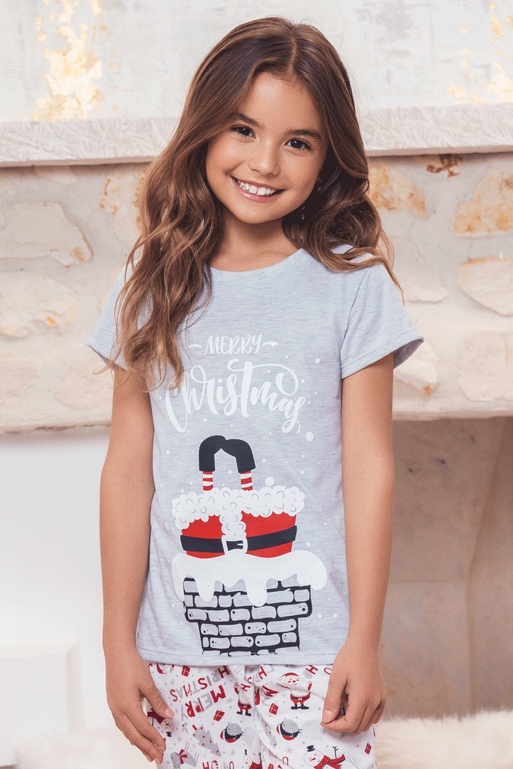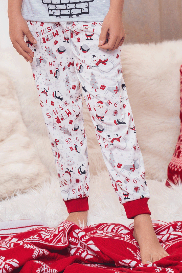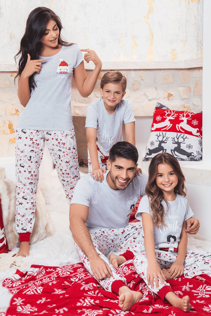 : Conjunto pijama suave, cómoda y divertida para compartir en familia esta Navidad; camiseta manga corta estampada y jogger con puños en rib para un ajuste perfecto.
