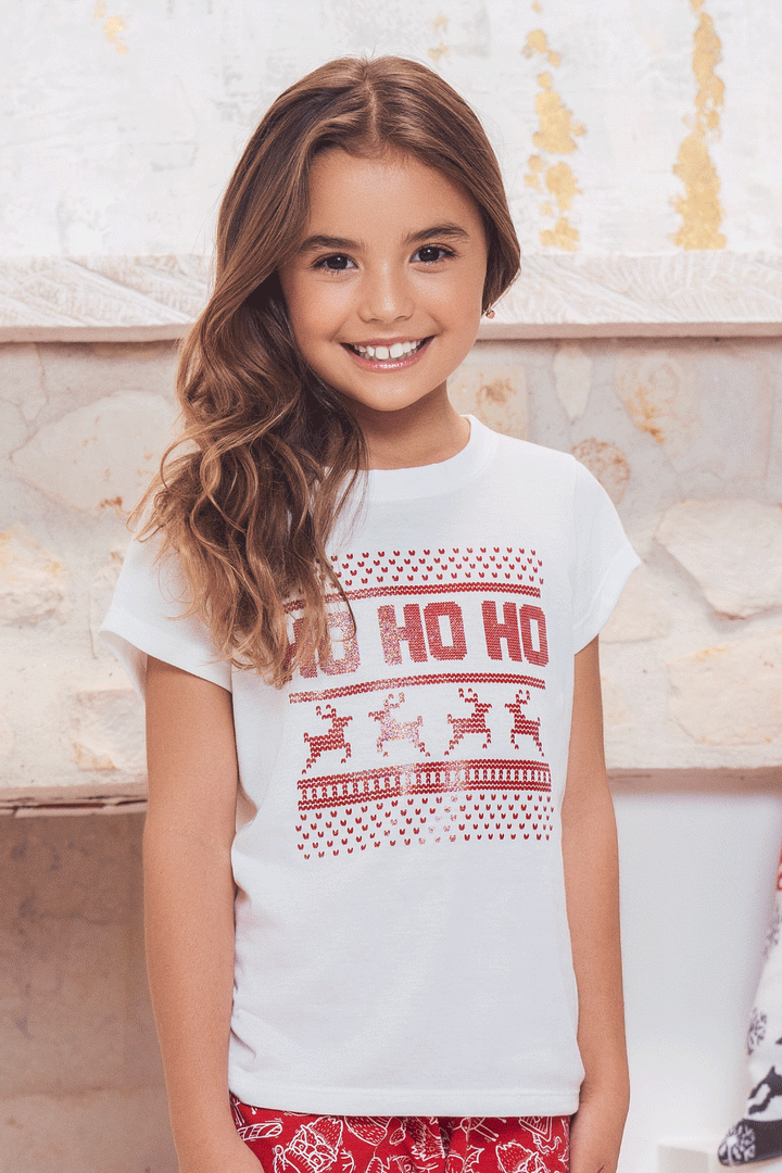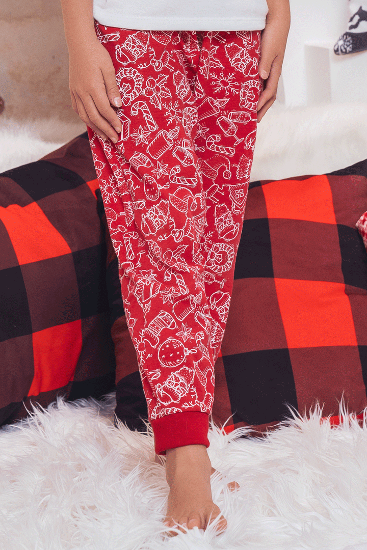 : Conjunto pijama suave, cómoda y divertida para compartir en familia esta Navidad; camiseta manga corta estampada y jogger con puños en rib para un ajuste perfecto.