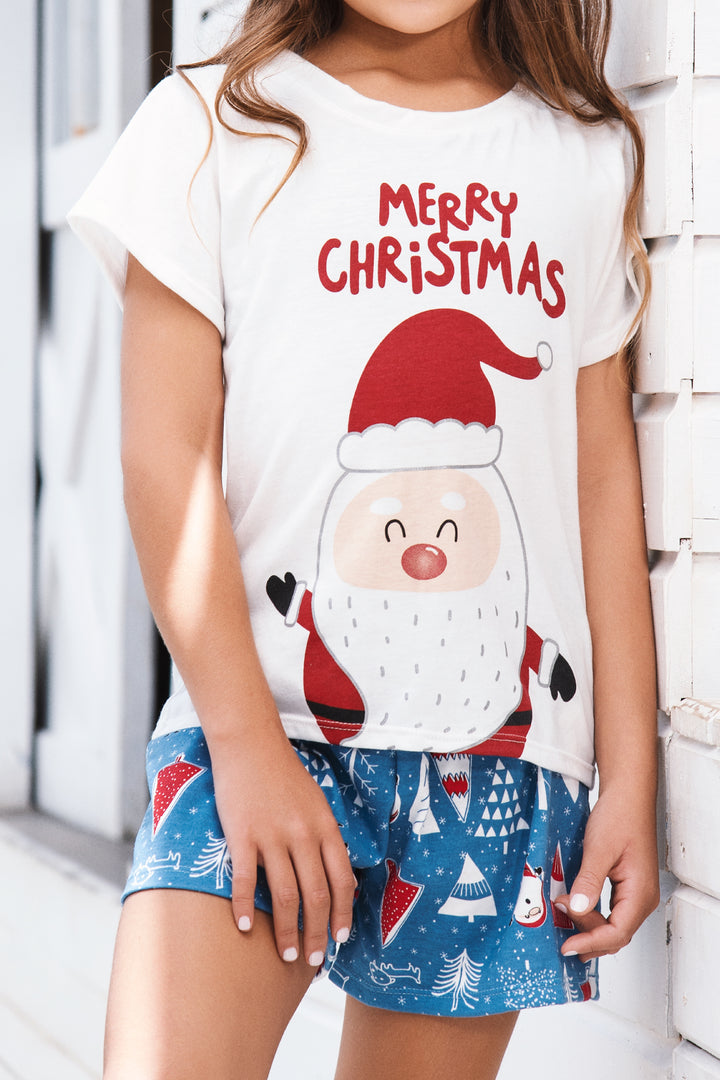 Pijama suave y cómoda. Silueta holgada, con camiseta estampada manga corta y short con cintura elástica