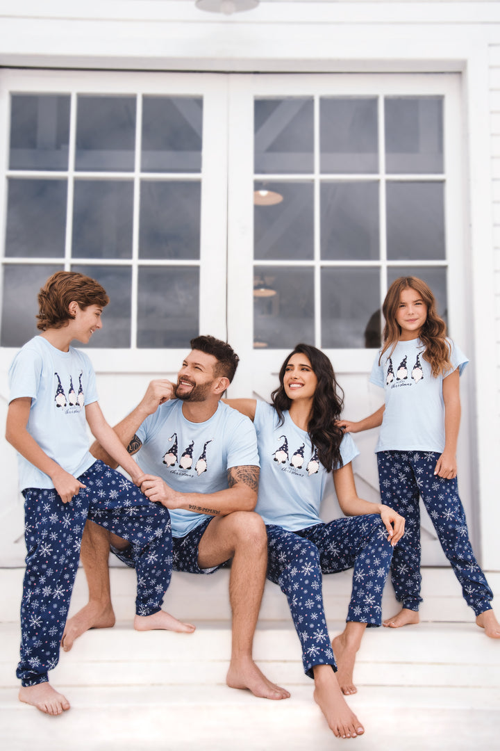- Pijama divertida. Silueta holgada, con camiseta estampada manga corta y jogger con cintura elástica.