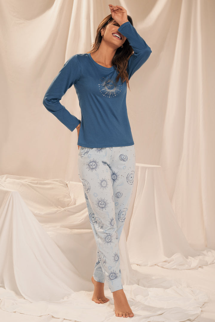 - Conjunto de camiseta manga larga estampada, diseñada junto a un jogger con cintura elástica.