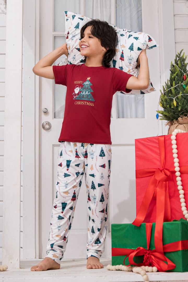 Conjunto de pijama de camiseta manga corta, y un pantalón a juego con cintura elástica para mayor comodidad.