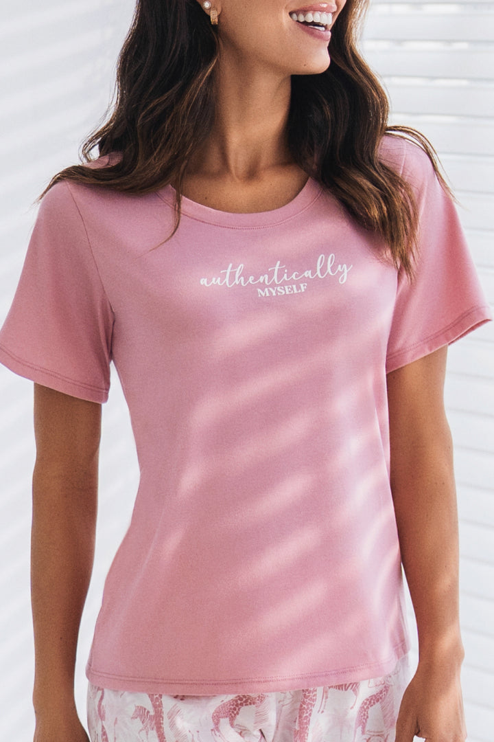 Pijama para mujer en algodón suave y cómoda, con camiseta manga corta diseñada junto a un capri estampado con cintura elástica