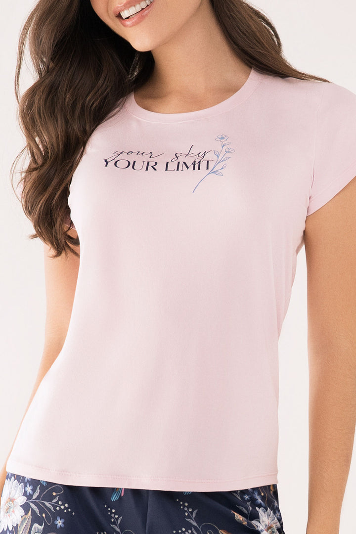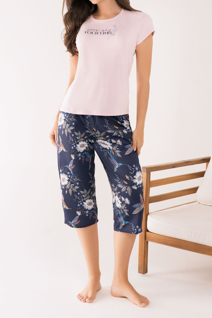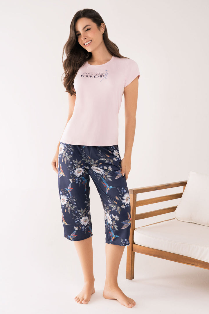 Pijama para mujer cómoda, con camiseta manga corta diseñada junto a un capri estampado con cintura elástica