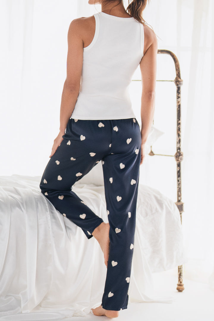 Pijama para mujer en Satín con pantalón de cintura elástica y camiseta manga sisa estampada.