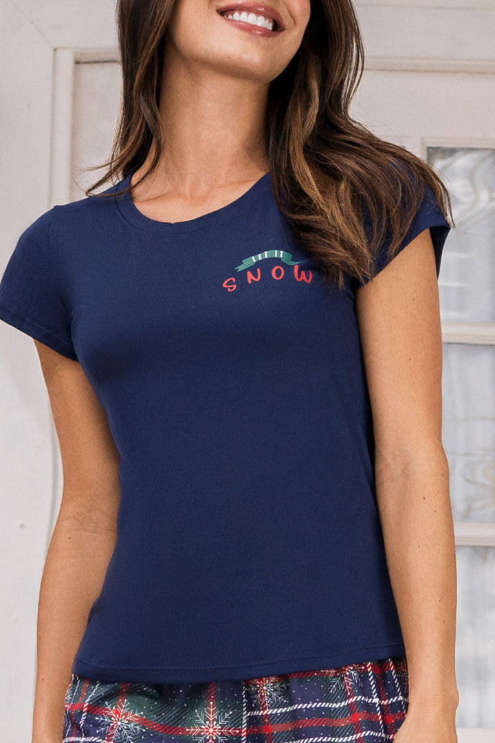 Pijama para mujer en Algodón suave y cómoda compuesta por una camiseta estampada manga corta, diseñada junto a un pantalón estampado con cintura elástica.