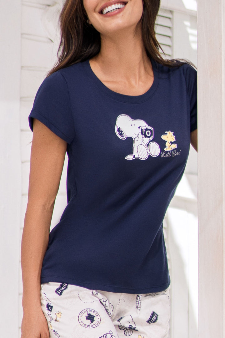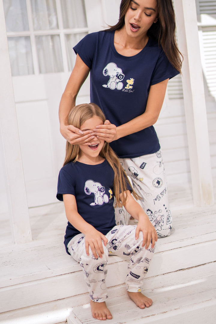 Pijama para mujer en Algodón suave y cómoda, compuestas por una camiseta estampada manga corta, diseñada junto a un pantalón estampado con cintura elástica.